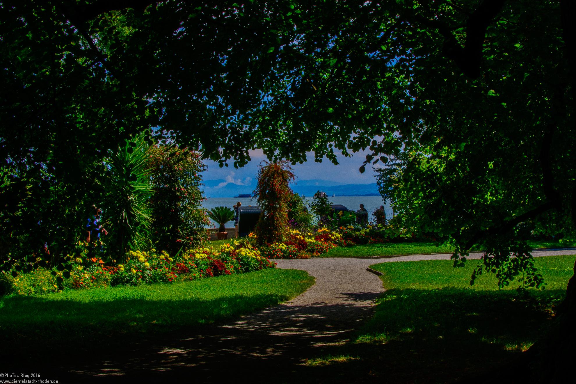 Bedingt durch das günstige Bodenseeklima wachsen auf dem tropfenförmigen Eiland Palmen und andere mediterrane Pflanzen im Schlosspark. Absolut empfehlenswert ist hier sicherlich ein Besuch des „Schmetterlingshauses“. Im Schmetterlingshaus hat man direkten Kontakt zu den aussergwöhnlichsten Schmetterlingsarten.